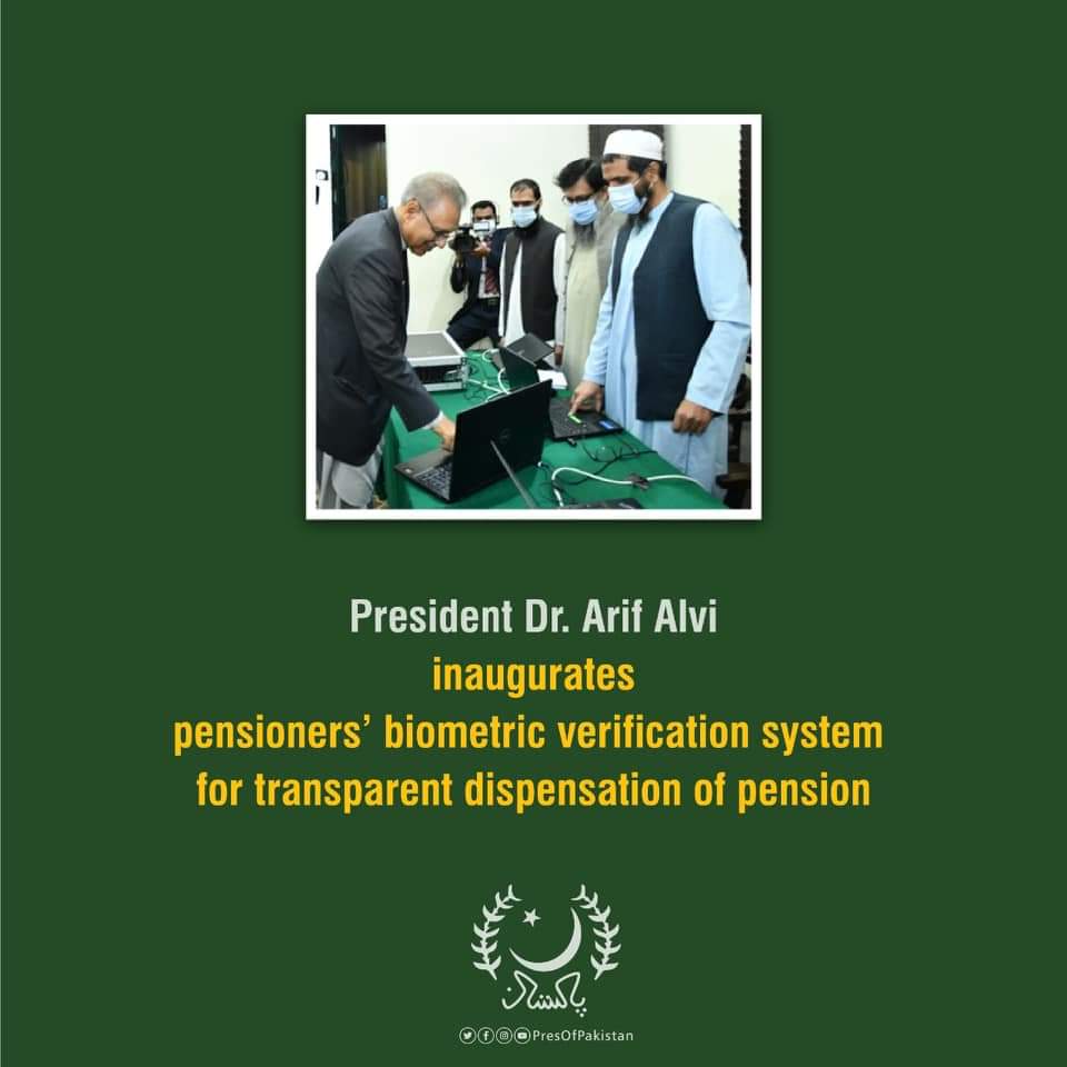President of Islamic Republic of Pakistan Dr. Arif Alvi for the inauguration pensioner’s biometric verification system for transparent dispensation of pension in a ceremony at Accountant General Pakistan Revenues (AGPR), He also addressed the participants of the ceremony.